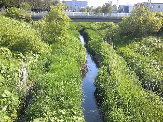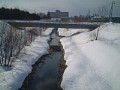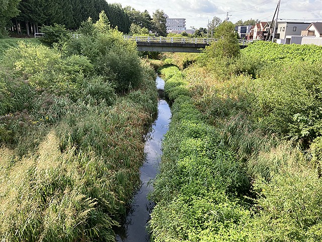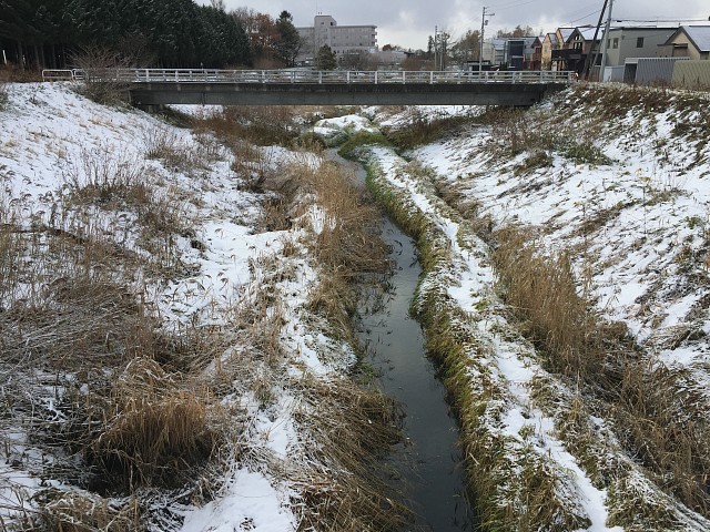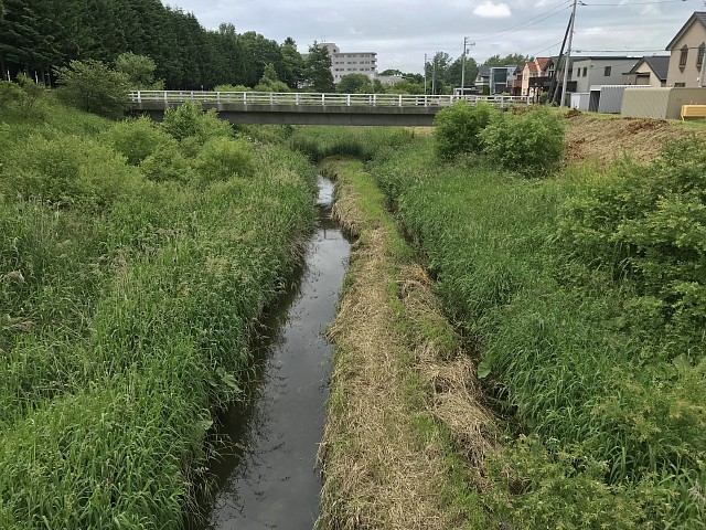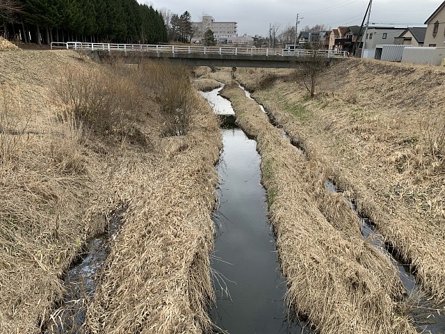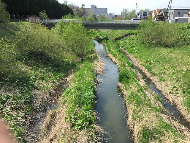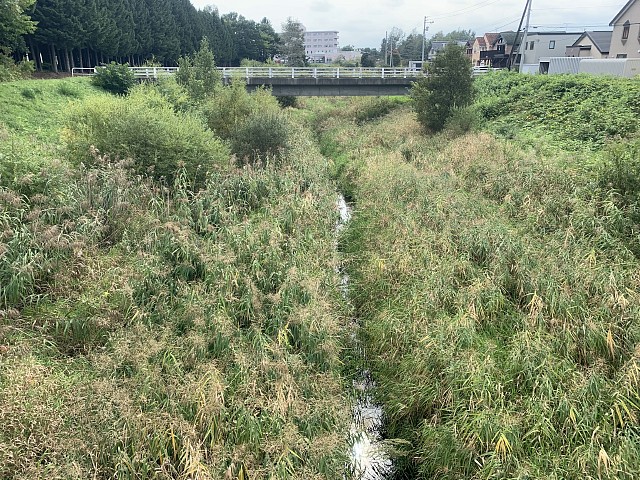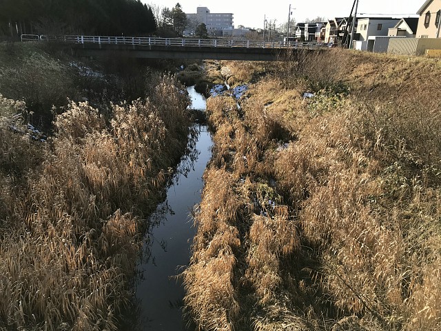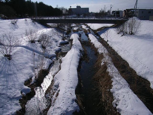 小学校付近以外は駅前通りから左岸の川の脇2メートルくらいのみにしました。